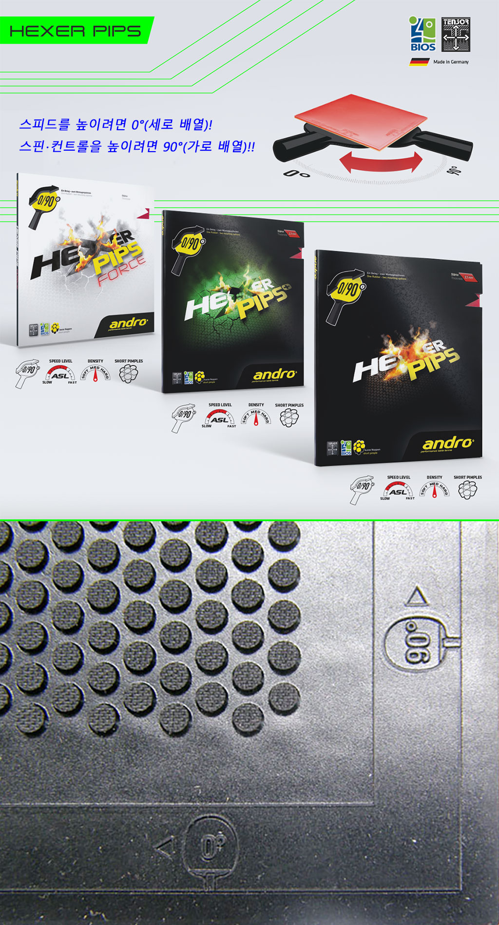 자신에게 맞는 러버를 발견하는 것이 승리의 지름길이라고 불리우고 있습니다. 헥서 핍스 시리즈는 입자배열을 플레이어가 자유롭게 선택할수있는 차세대 옵셔널 돌출러버입니다.
