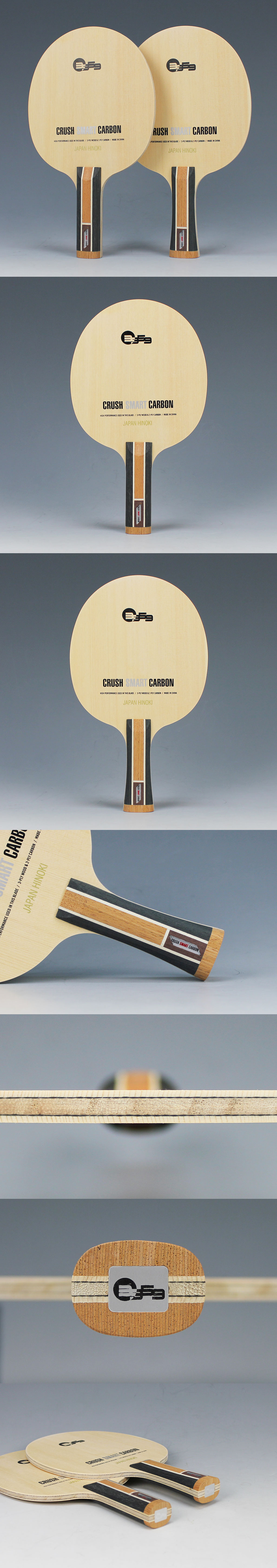 '크러쉬카본(CRUSH Carbon)' 과 '크러쉬 스마트카본(CRUSH Smart Carbon)' 은 경쟁 브랜드에서 출시되었던 슐라거와 슐라거 라이트를 기반으로 폴리볼 시대에 적합하게 변주된 제품이죠. 다수의 러버와도 상생할 수 있으며 다양한 사용자층을 포용하는 7mm 히노키카본 블레이드에 요즈음 화두인 ABS볼에 대한 반응성 향상을 염두에 두었으며 셀룰로이드 볼 시대의 회전과 파워를 내줄 수 있게 만들기 위해 노력 했습니다.